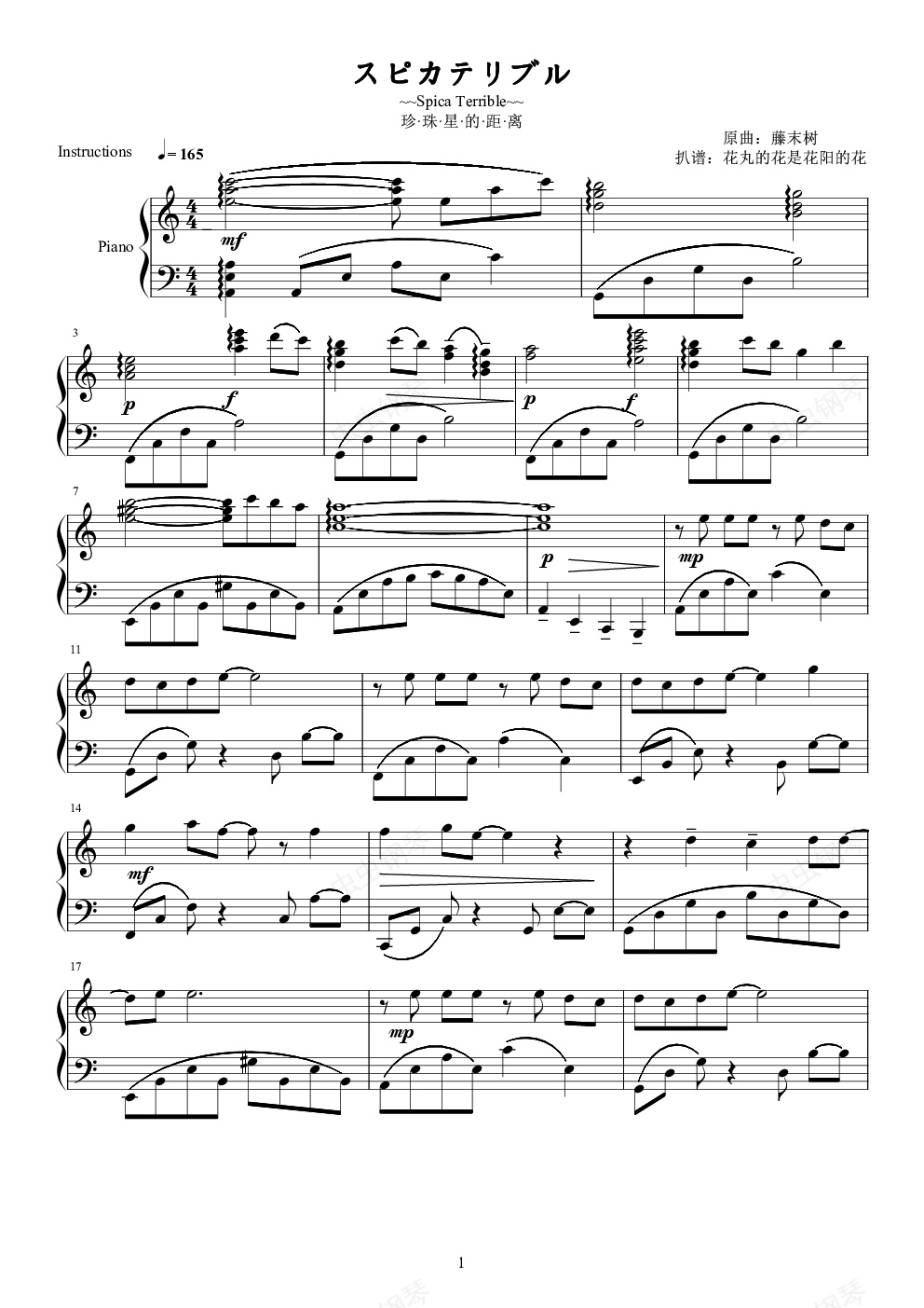 钢琴谱:Lovelive南小鸟~珍珠星的距离(スピカテリブル)