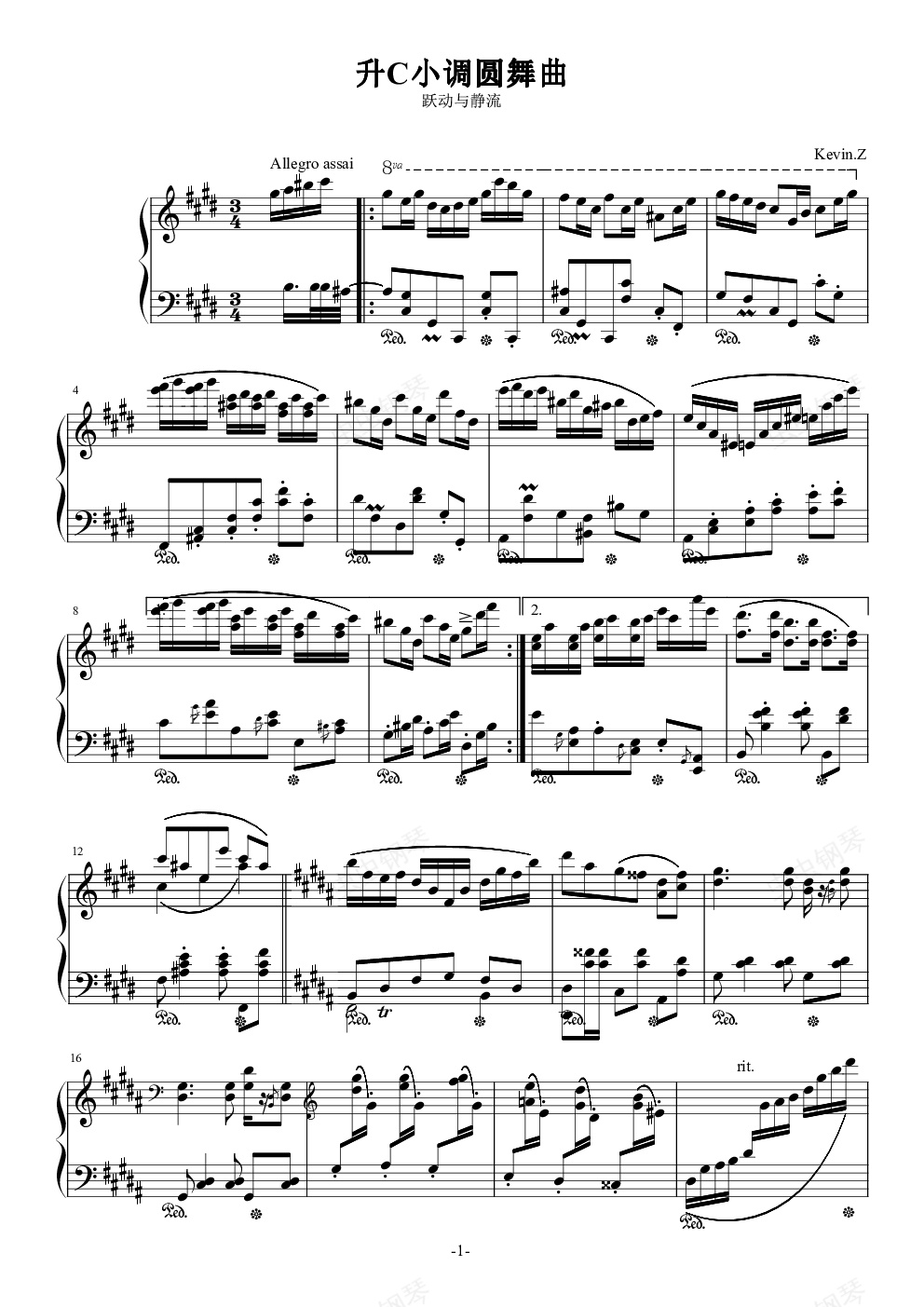 钢琴谱:升C小调圆舞曲《跃动与静流》