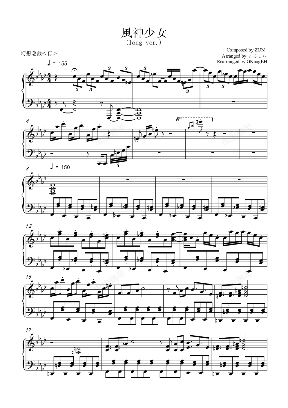 钢琴谱:【东方】【触手猴】風神少女(long ver.)