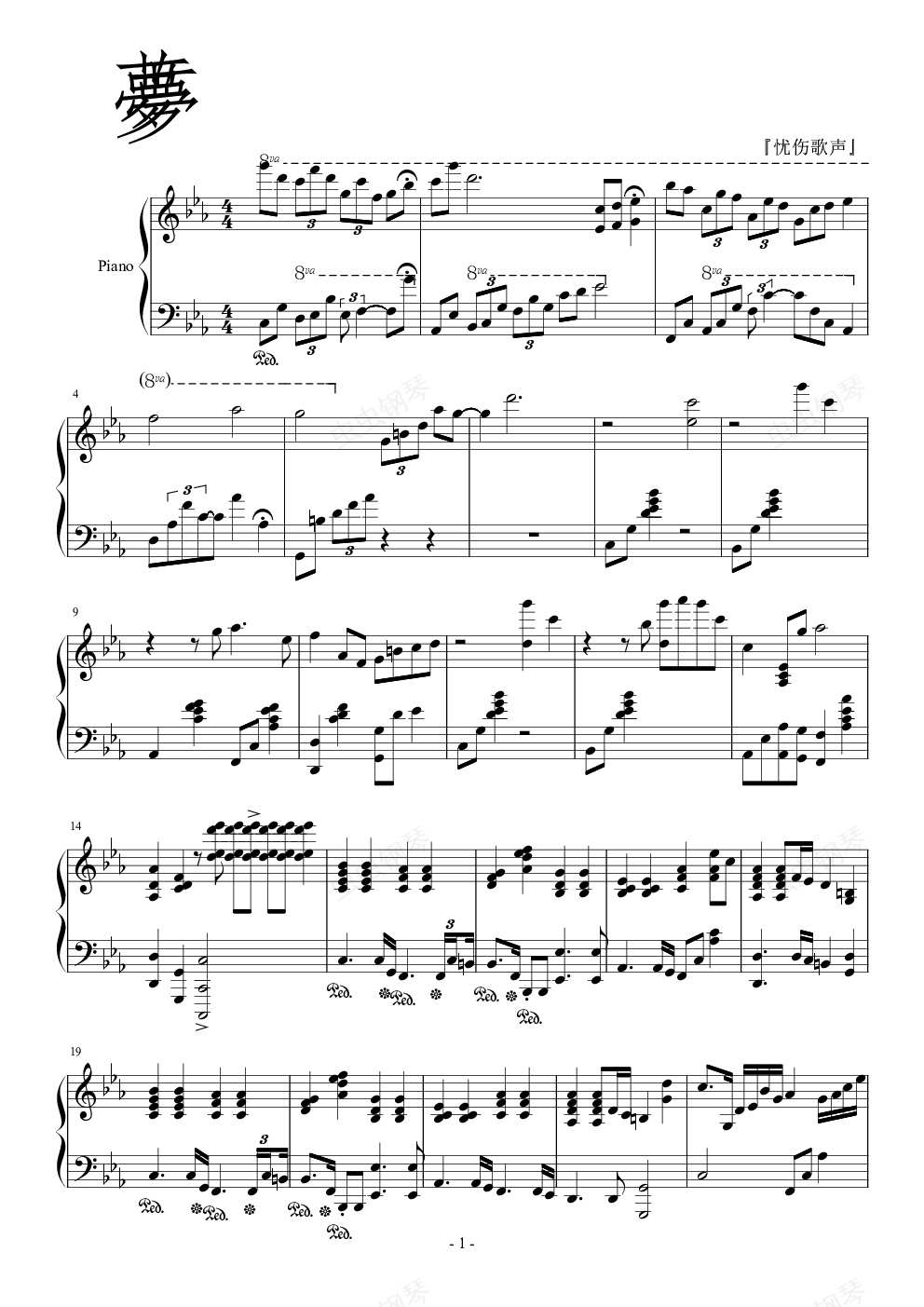 钢琴谱:梦(男版)
