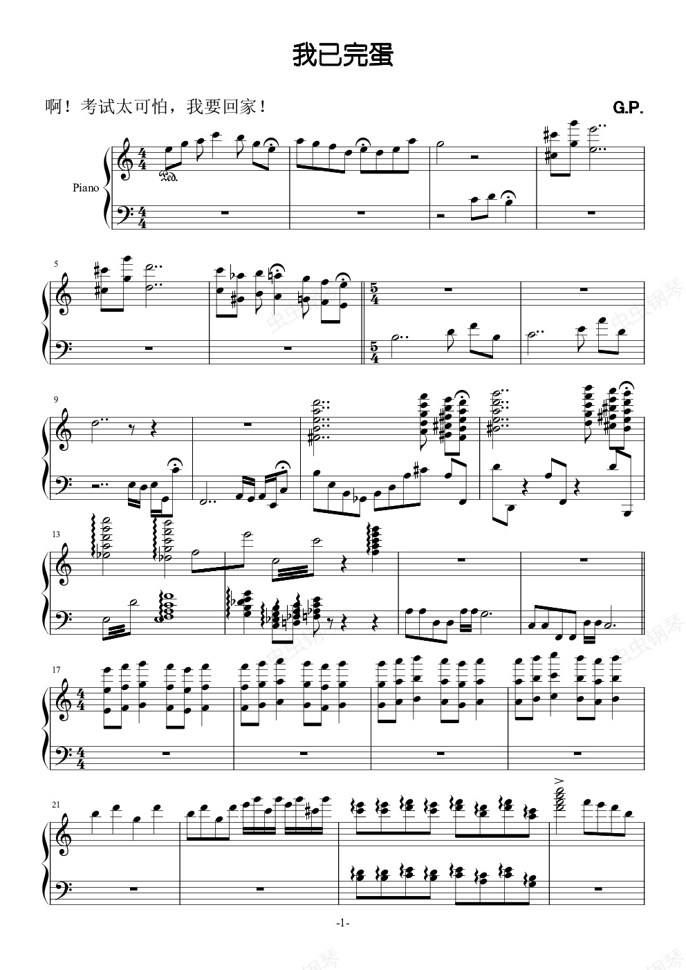 钢琴谱:我已完蛋