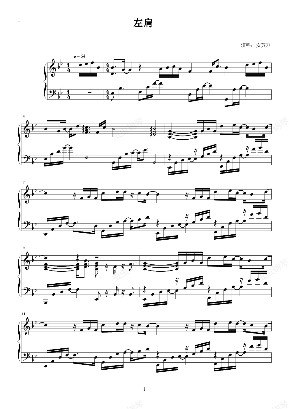 钢琴谱:左肩