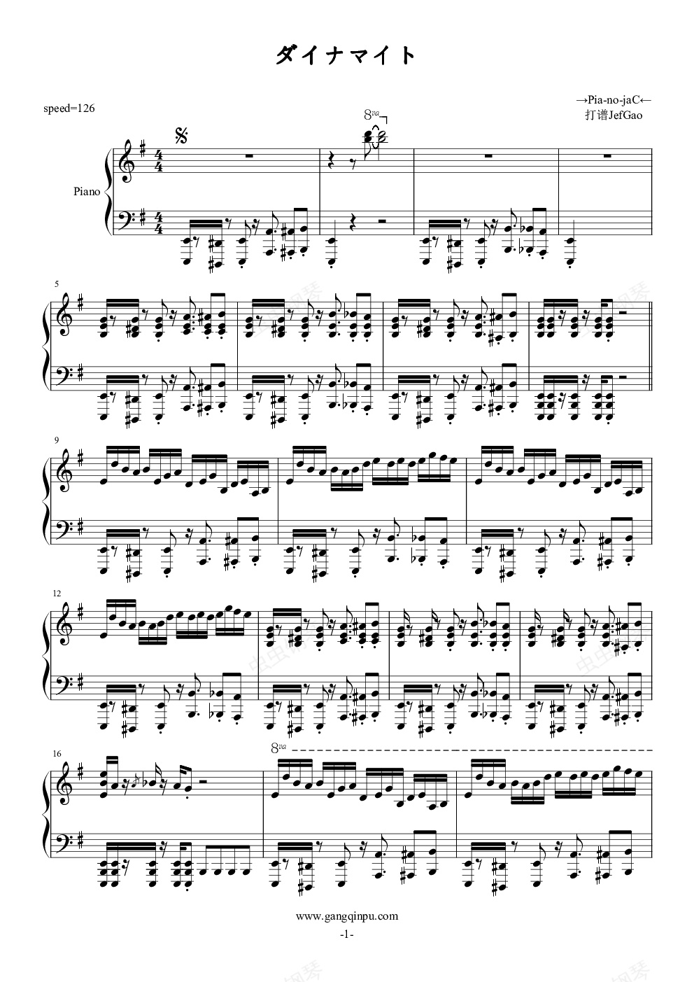 钢琴谱:pia-no-jac风神雷神《ダイナマイト·炸药》