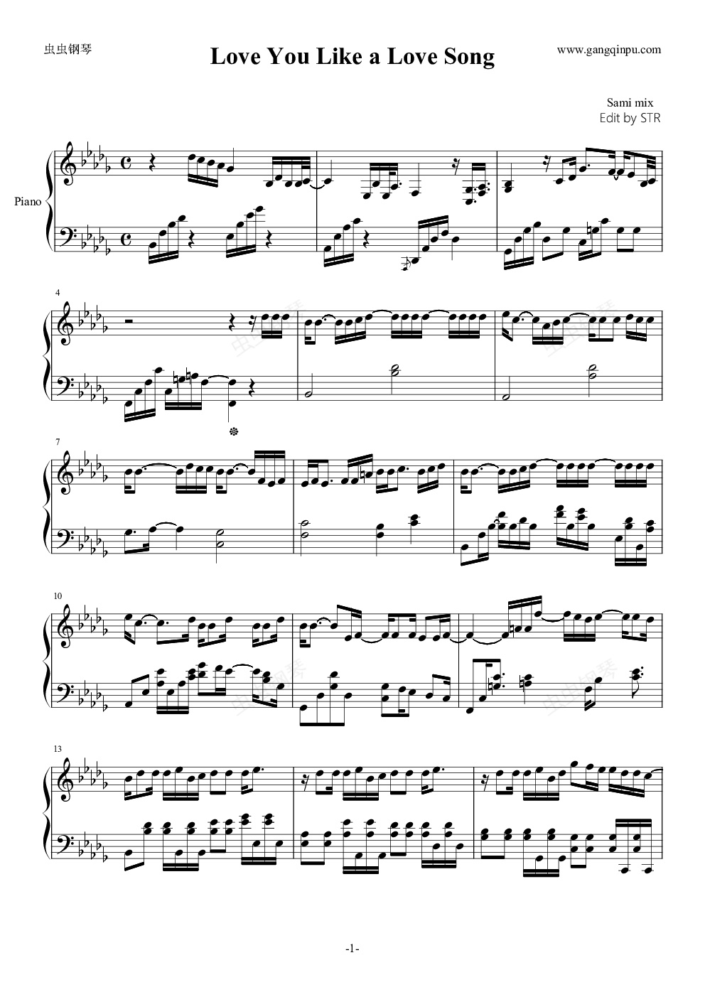 钢琴谱:Love You Like A Love Song