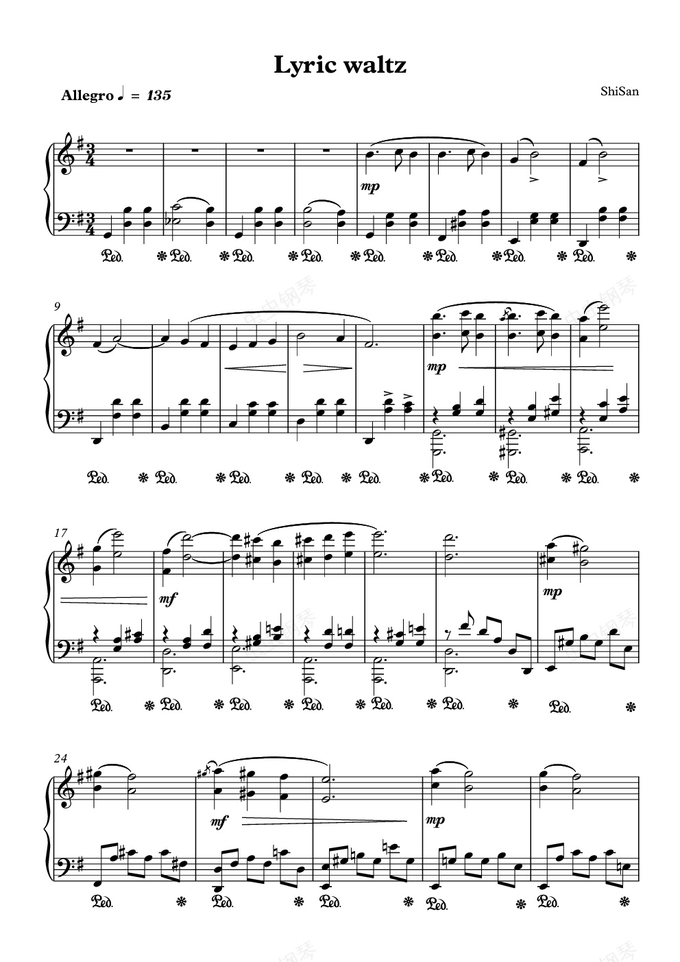 钢琴谱:Lyric waltz