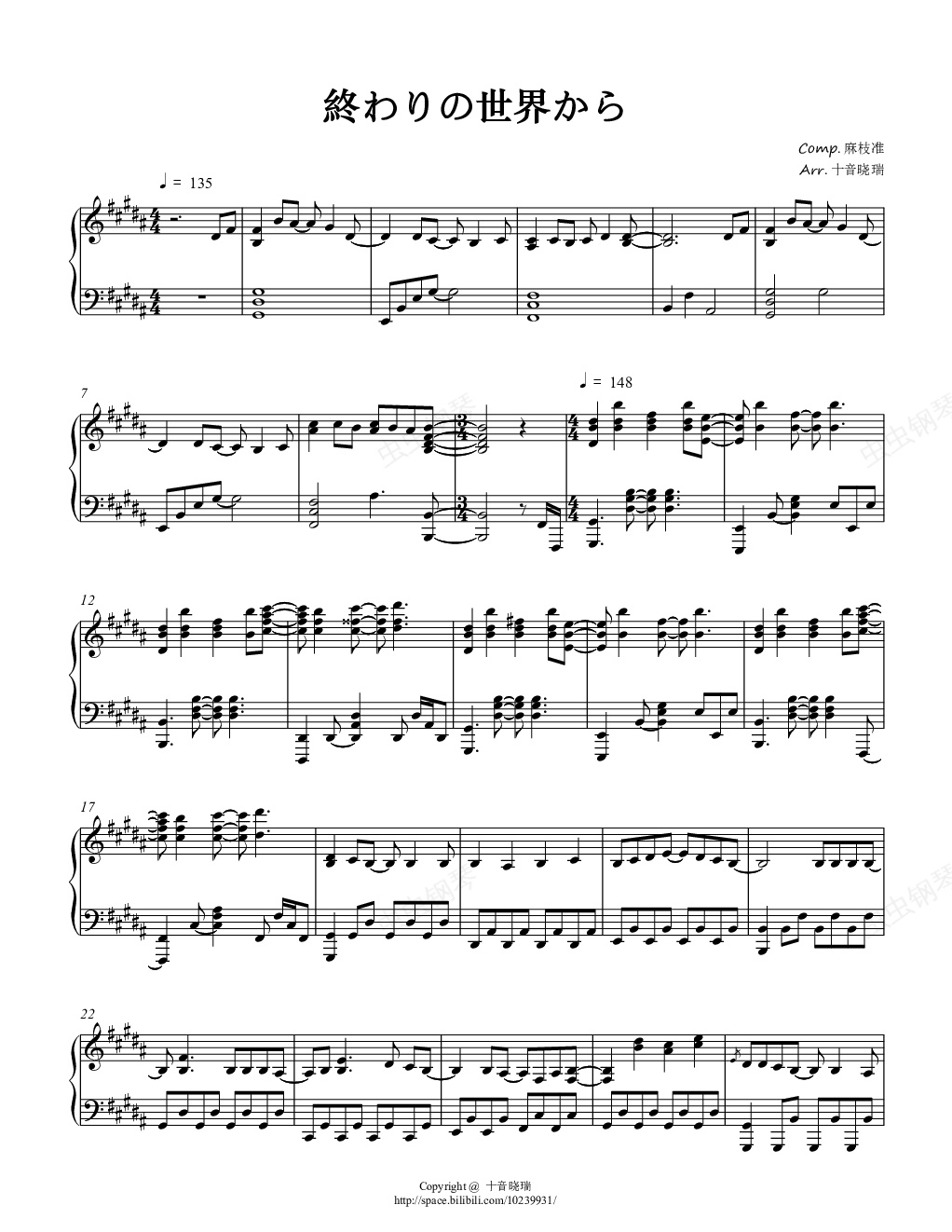 钢琴谱:从终焉的世界开始 (终わりの世界から)