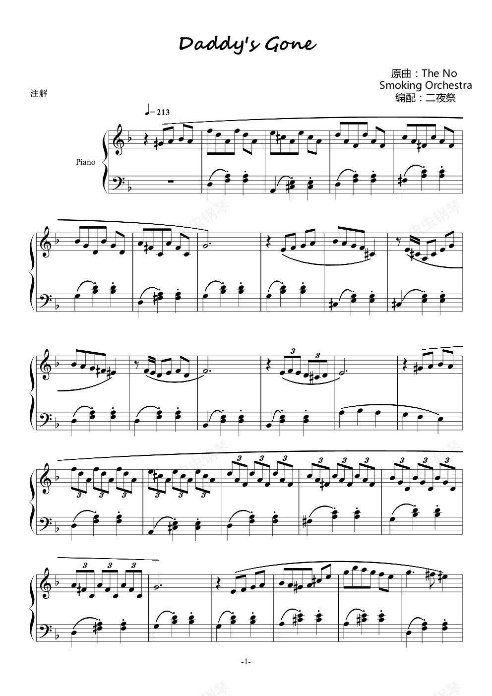 钢琴谱:【爸爸出差时】Daddy's Gone