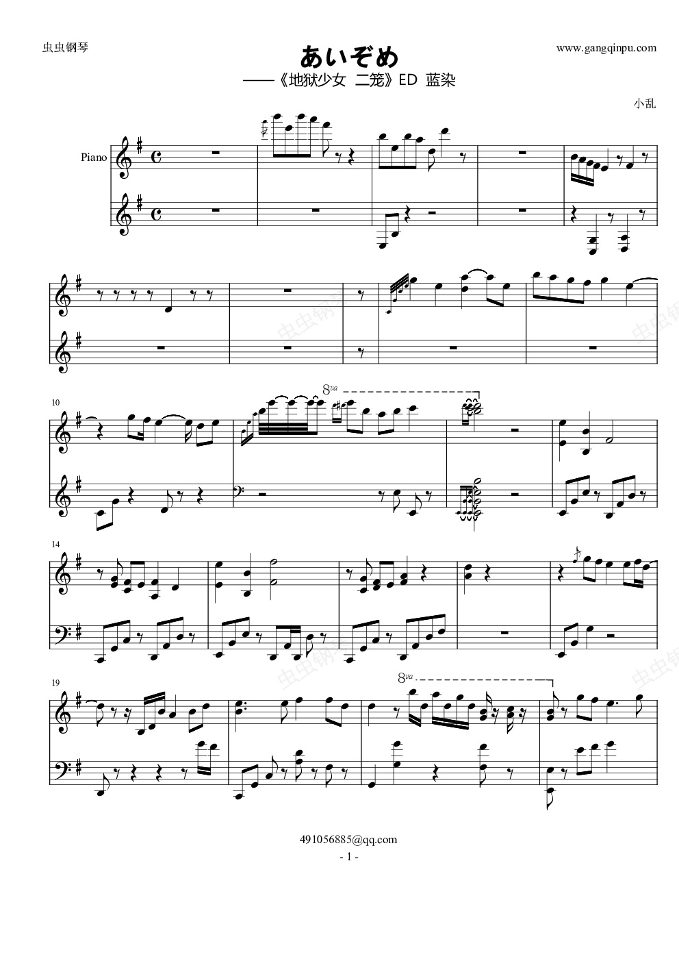 ===========谱面没有排版,请各位朋友多多包涵,有能力的可以自行编辑OVE文件,转载注明出处即可。多声部注意,视弹奏水平自行取舍,键位符合人类生理逻辑。==============《地狱少女 二笼》的ED,是目前四个季ED中吾最喜欢的一首。其实在出宵伽前就开始做了因为种种原因加上懒癌一直拖到现在。试听上传的是能登姐姐的演唱,谱子开头用的是演唱的版本,有兴趣的可以前往:/song/ 欣赏====================== 幻想魔音工坊群[IMG]/pu/2017/7/28/__9355__[/IMG]