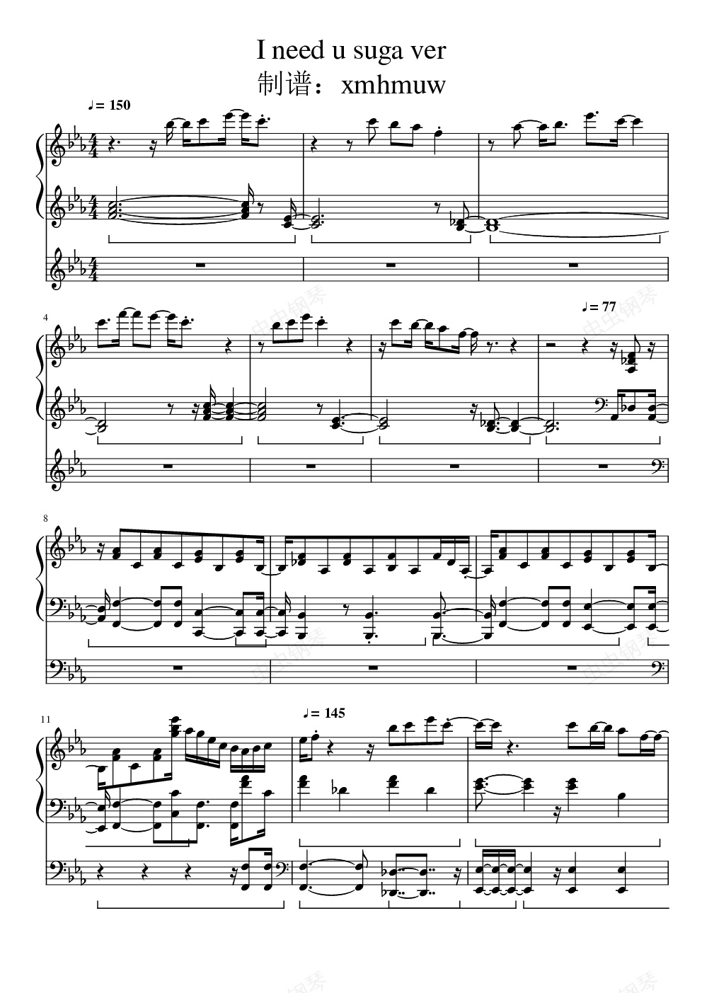 钢琴谱:防弹少年团 I NEED U SUGA puma ver.
