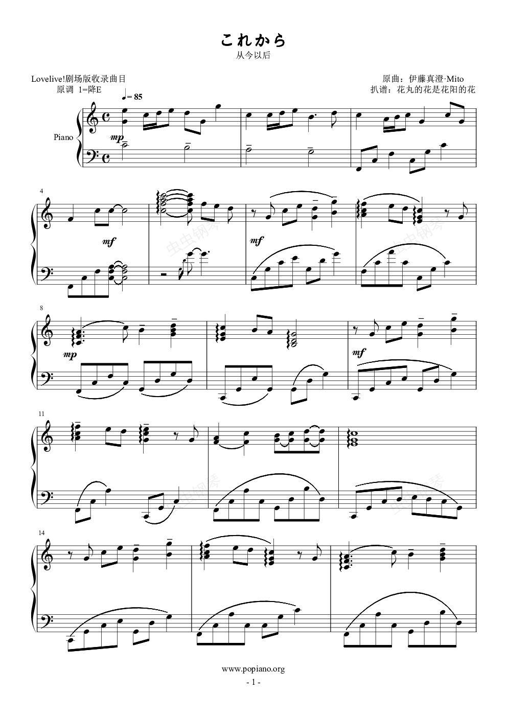 钢琴谱:【Lovelive】μ‘s~これから(从今以后)