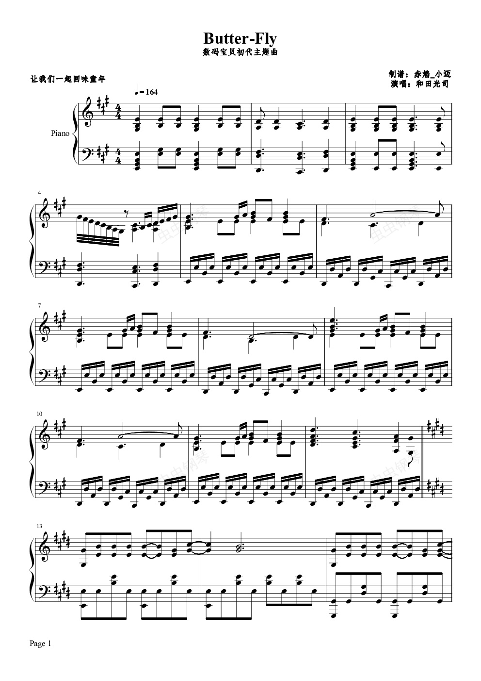 钢琴谱:数码宝贝主题曲 Butter-Fly