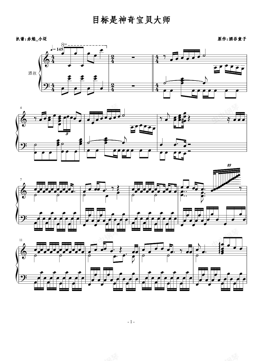钢琴谱:酒吞童子 目标是神奇宝贝大师