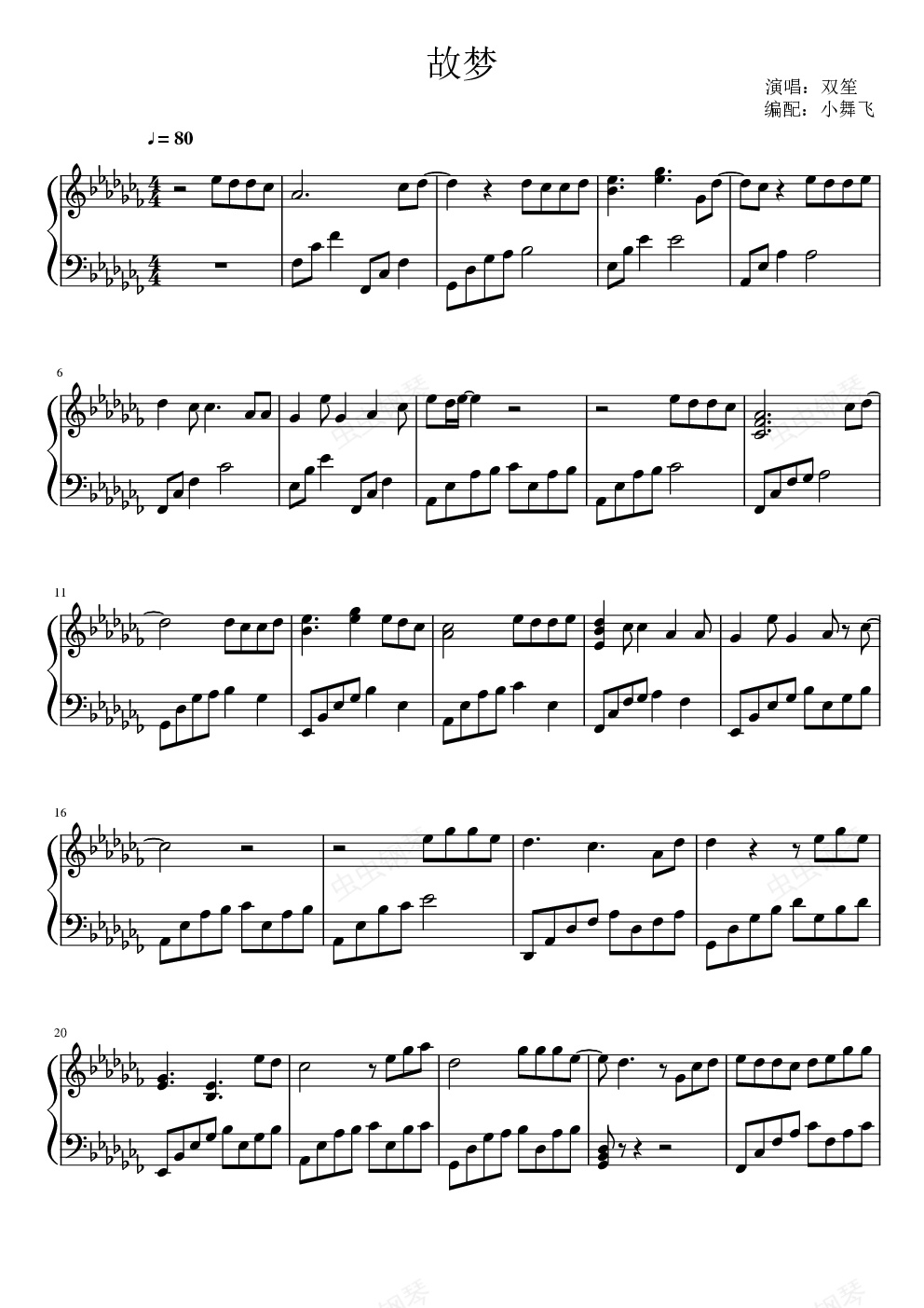 我的一位朋友很喜欢这首歌,但是在网上搜不到钢琴谱,于是我就帮她编配一个版本,现在我就分享给大家,喜欢就支持一下吧!!嘿嘿,对了,bC调的谱直接无视调号,就是等于C调的谱。 旧忆就像一扇窗 推开了就再难合上 谁踩过枯枝轻响 萤火绘着画屏香 为谁拢一袖芬芳 红叶的信笺情意绵长 他说就这样去流浪 到美丽的地方 谁的歌声轻轻 轻轻唱 谁的泪水静静淌 那些年华 都付作过往 他们偎依着彼此说好要面对风浪 又是一地枯黄 枫叶红了满面秋霜 这场故梦里 人生如戏唱 还有谁登场 昏黄烛火轻摇晃 大红盖头下谁彷徨 流泪的花和荣喜堂 静静放在一旁 回忆像默片播放 刻下一寸一寸旧时光 他说就这样去流浪 到美丽的地方 谁的歌声轻轻 轻轻唱 谁的泪水静静淌 愿化一双 鸟儿去飞翔 任身后哭号嘶喊着也追不上 又一年七月晚风凉 斜阳渐矮只影长 这场故梦里 孤桨声远荡 去他乡 遗忘.................... ....................................