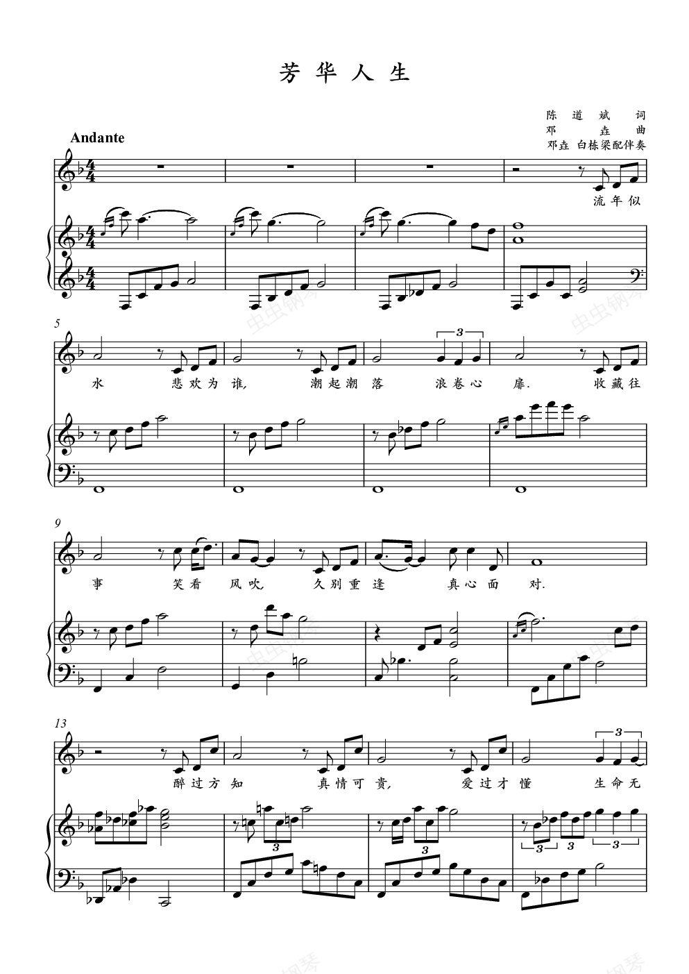 钢琴谱:《芳华人生》钢琴伴奏谱