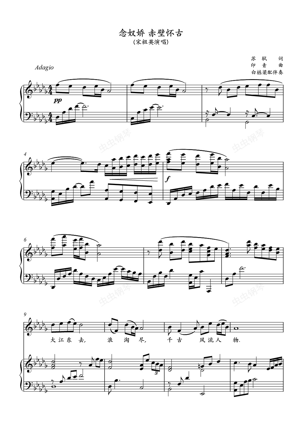 钢琴谱:《念奴娇·赤壁怀古》钢琴伴奏谱