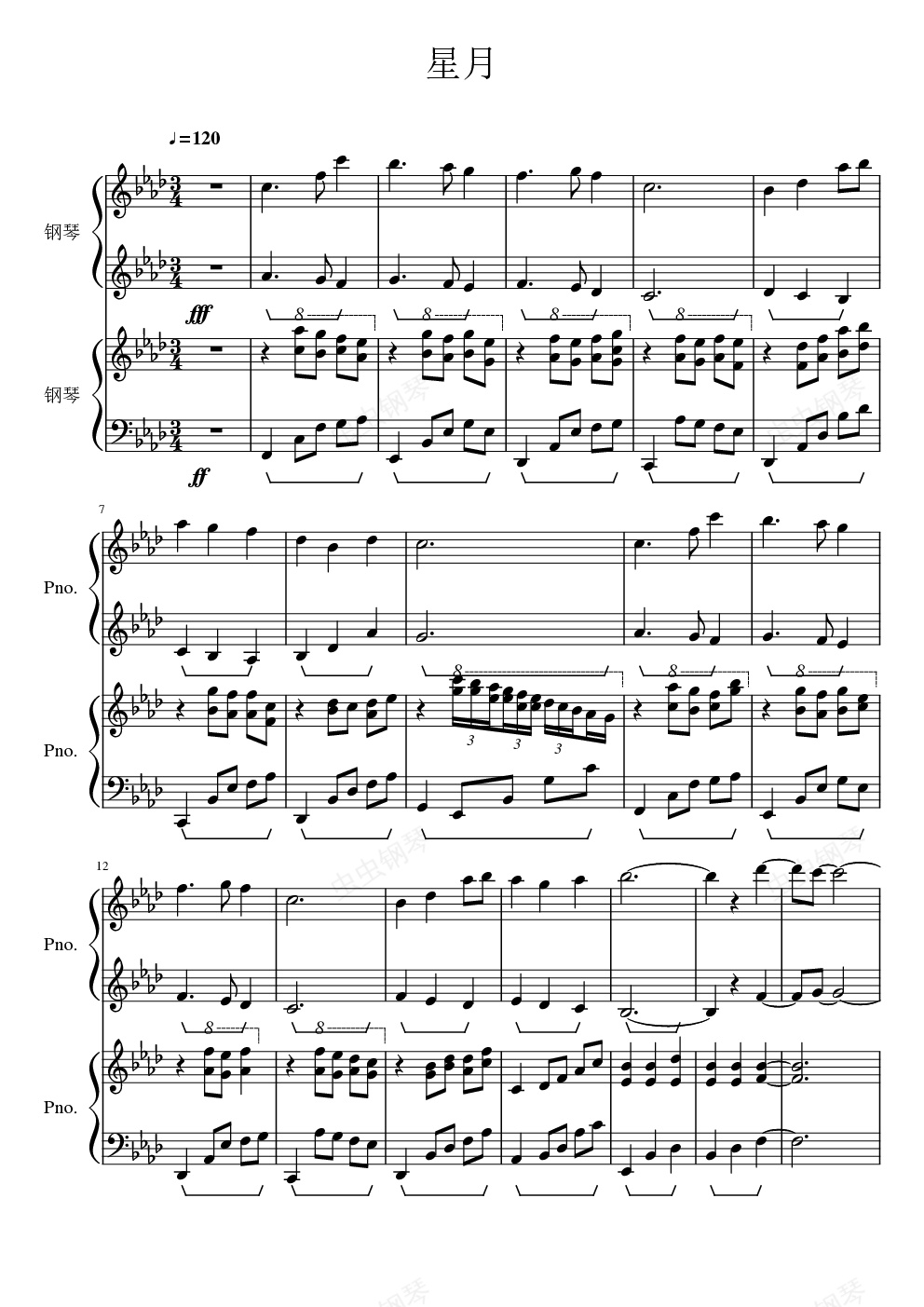 钢琴谱:星月(节选)(楚乔传)