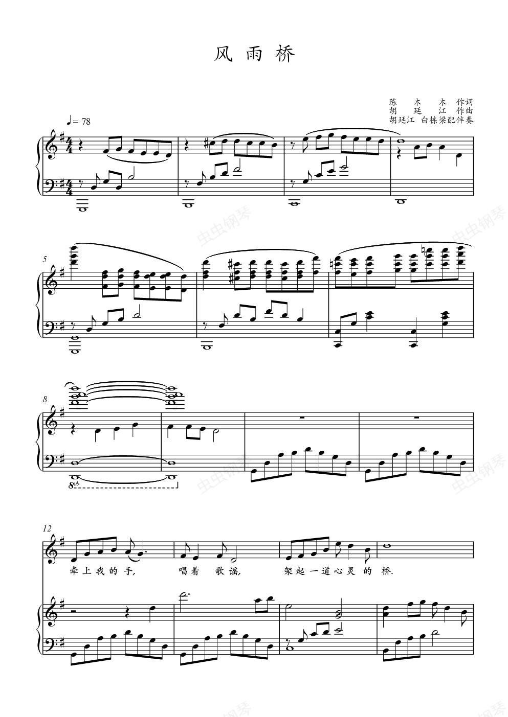 钢琴谱:《风雨桥》钢琴伴奏谱
