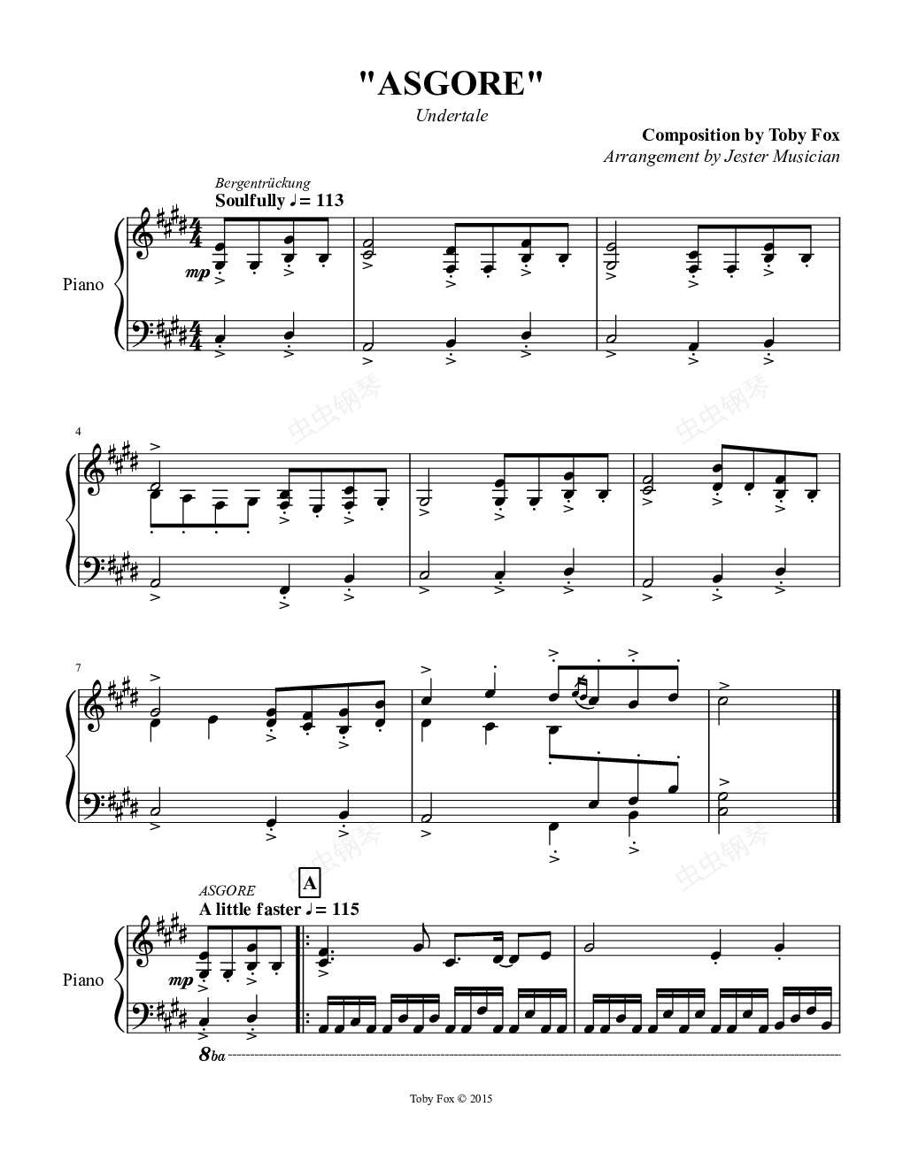 钢琴谱:【Undertale】艾斯格尔