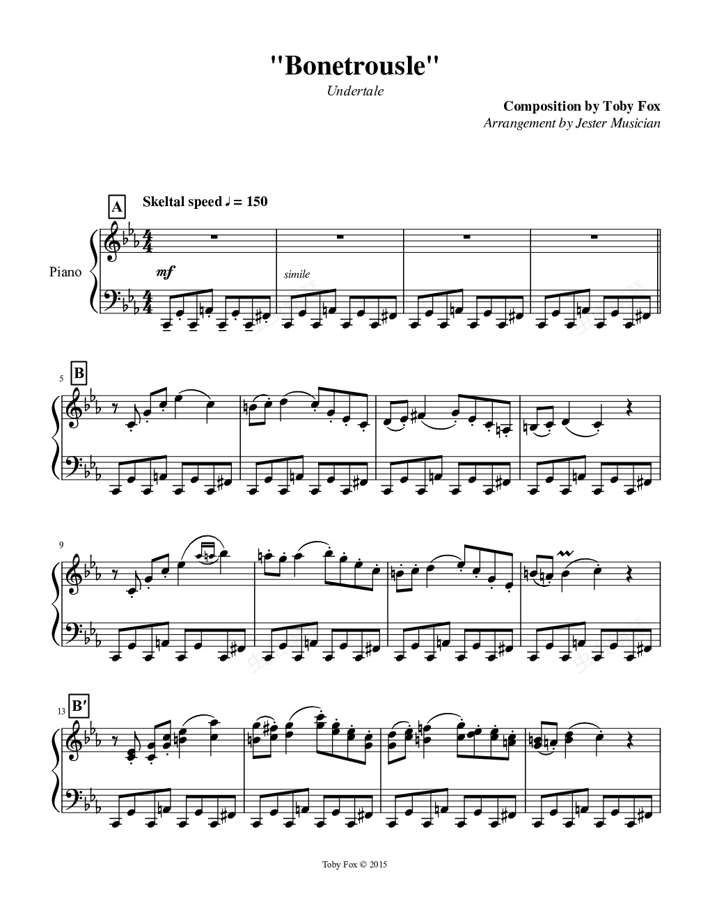钢琴谱:【Undertale】 Bonetrousle