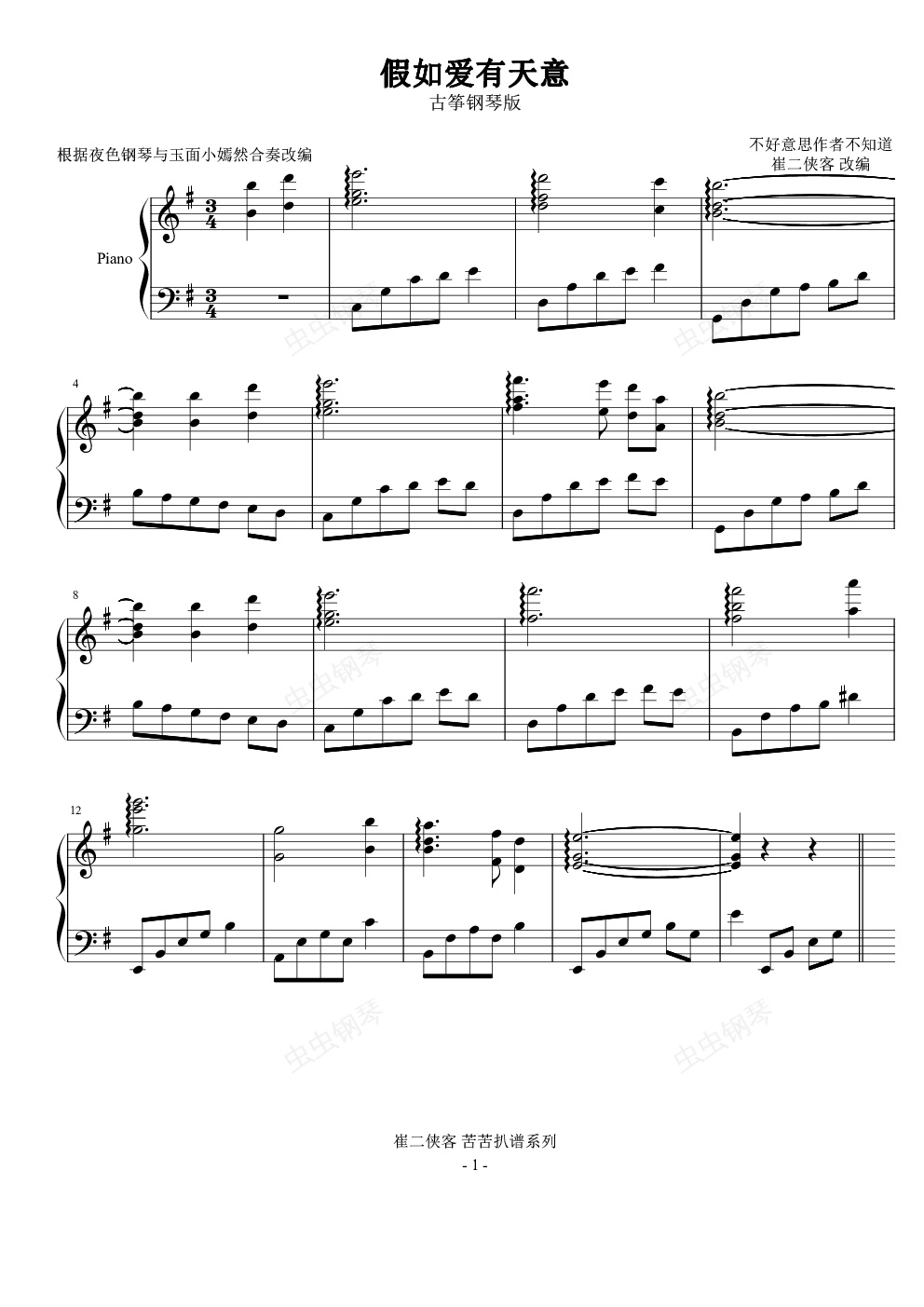钢琴谱:假如爱有天意 钢琴古筝合奏