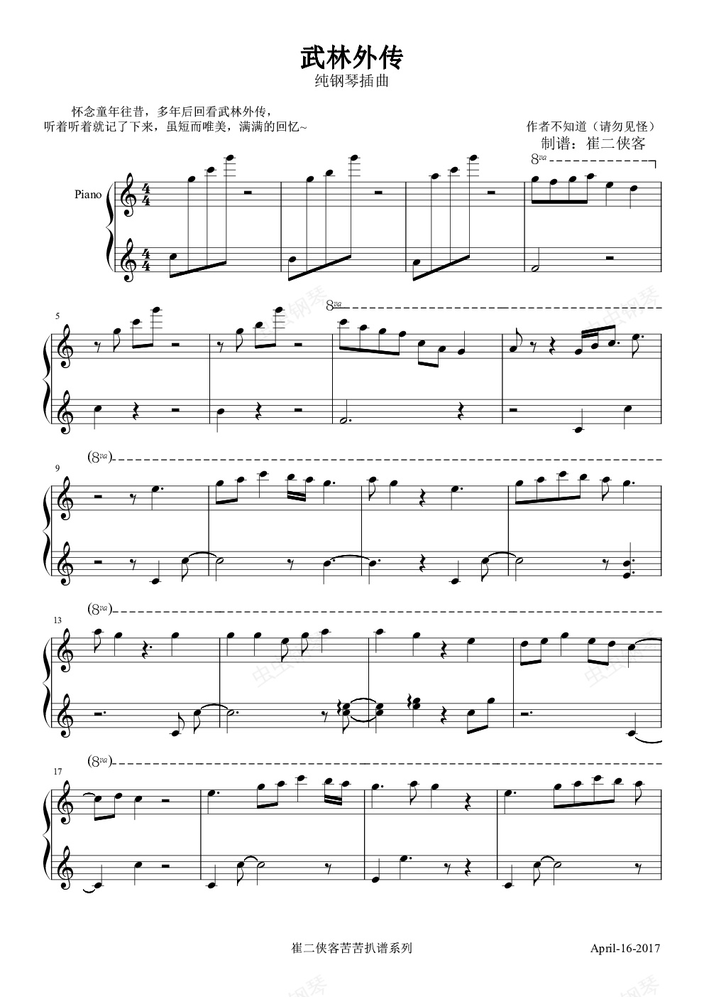 钢琴谱:武林外传 插曲