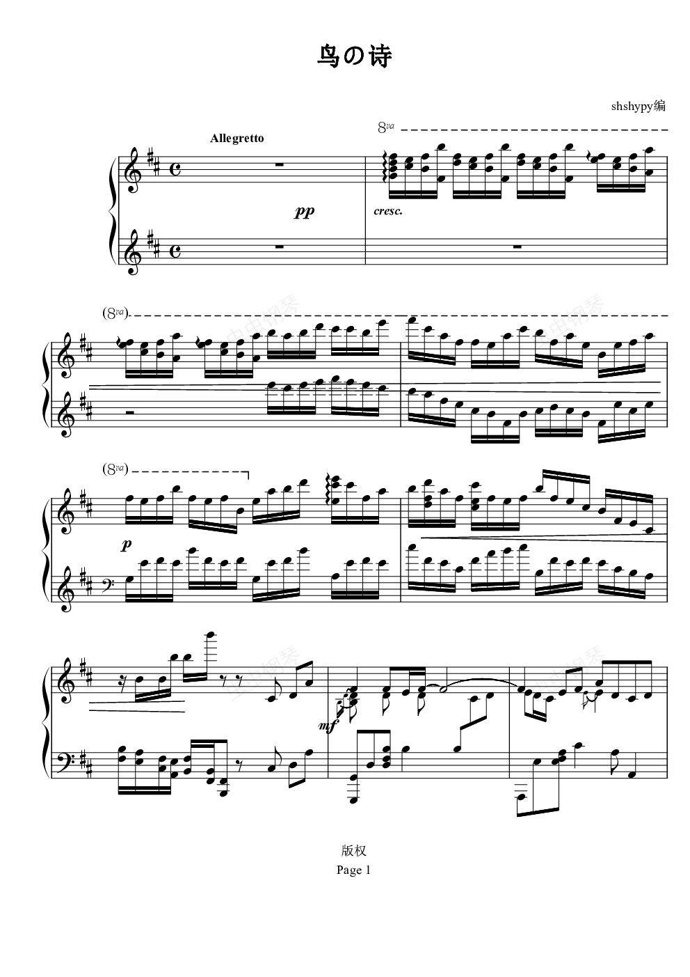 钢琴谱:鸟之诗(jazz)