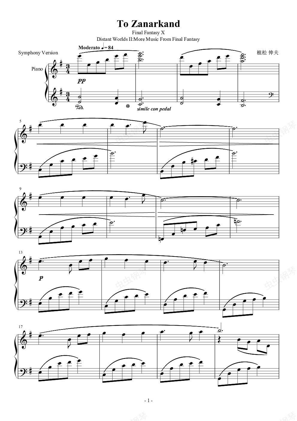 钢琴谱:To Zanarkand(交响乐版)