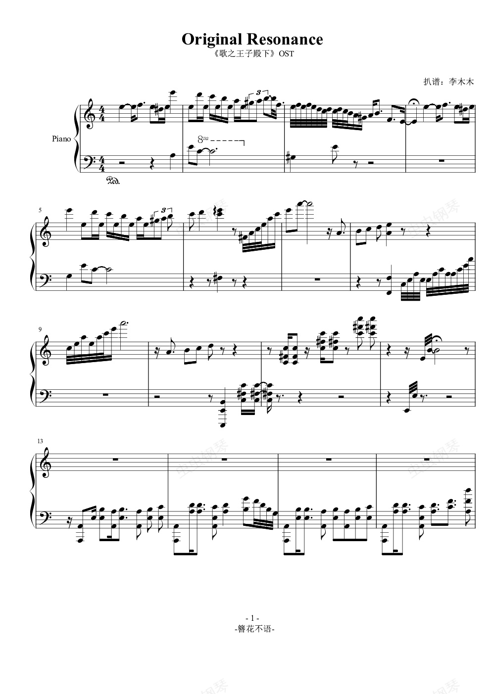 钢琴谱:歌之王子殿下 ORIGINAL RESONANCE