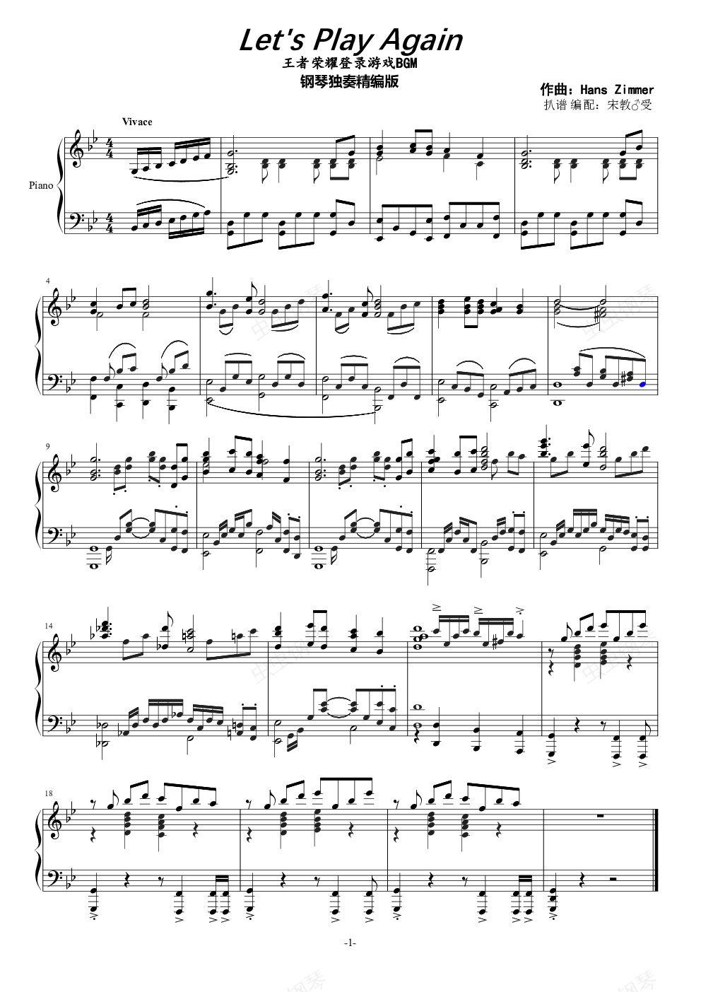 钢琴谱:钢琴精编版Let's Play Again-王者荣耀登录BGM