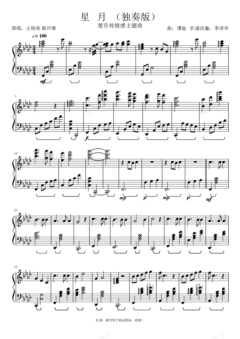 钢琴谱:星月(独奏版)(楚乔传)
