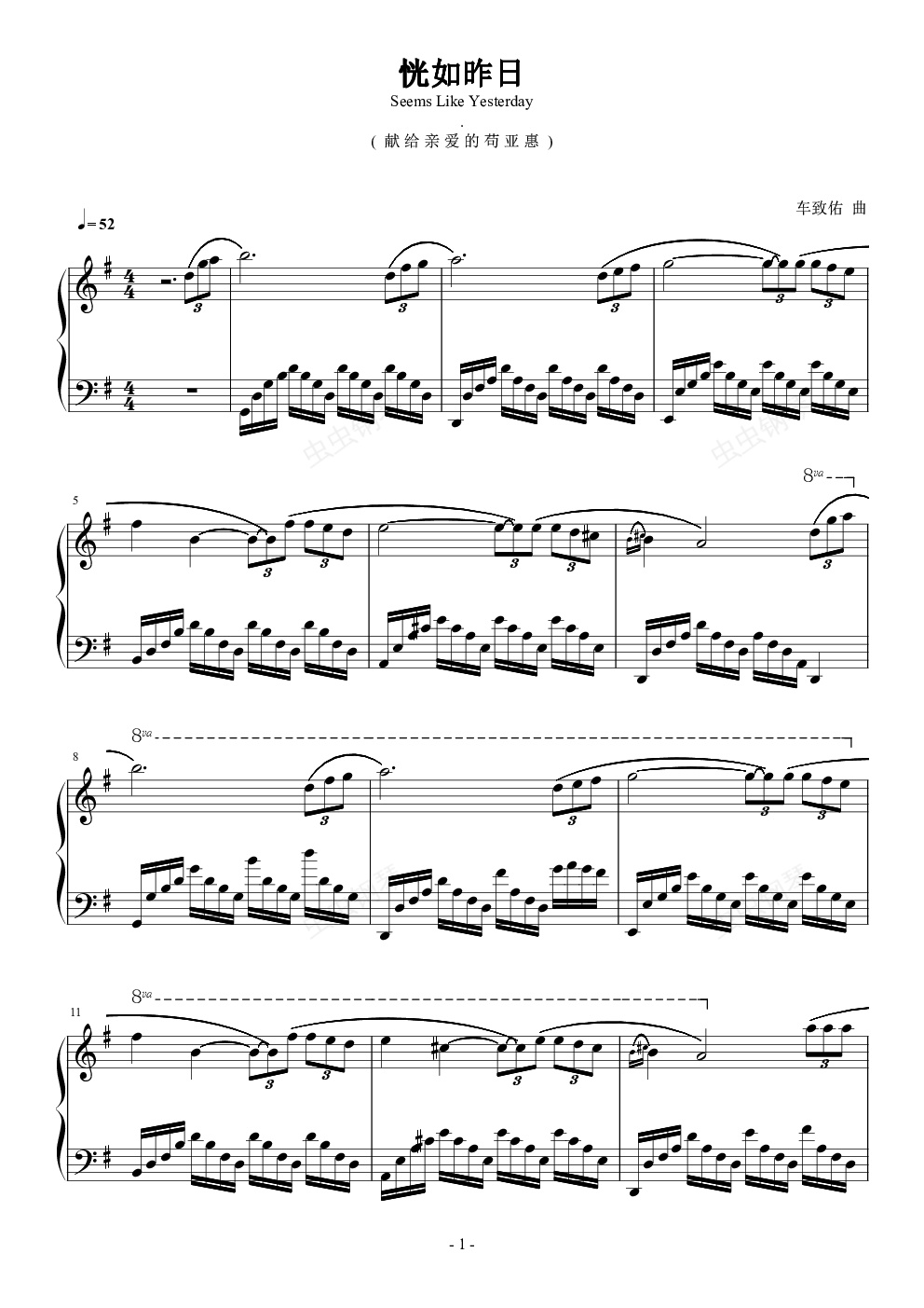 钢琴谱:Seems Like Yesterday-恍如昨日