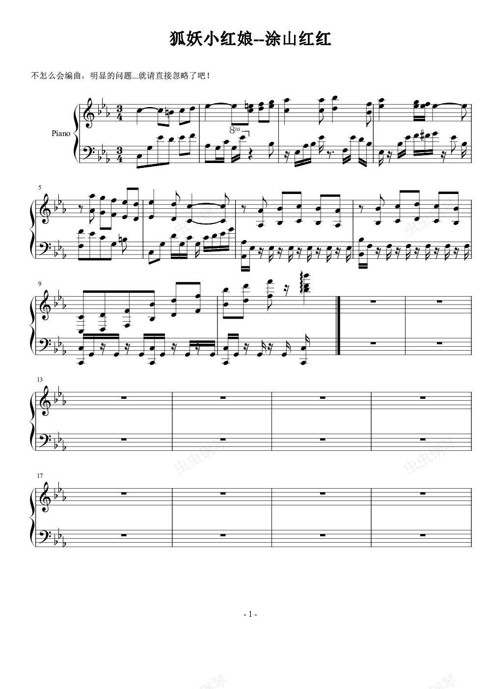 钢琴谱:狐妖小红娘---涂山红红