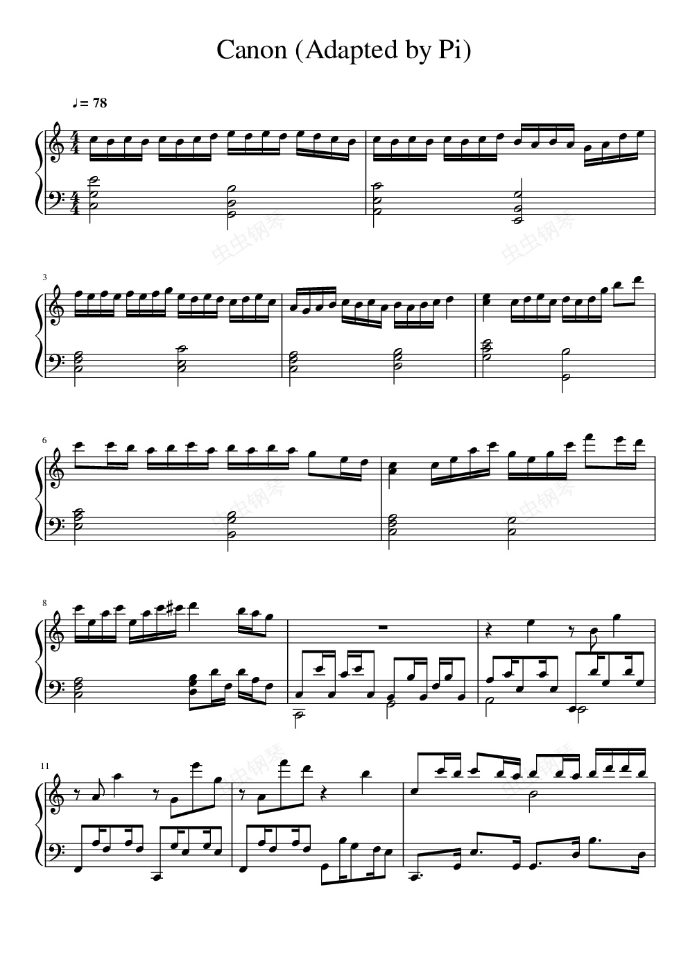 钢琴谱:【钢琴块 2】~ 卡农改编版