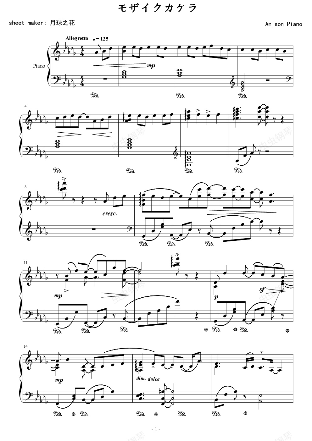 钢琴谱:【触手猴】马赛克的碎片