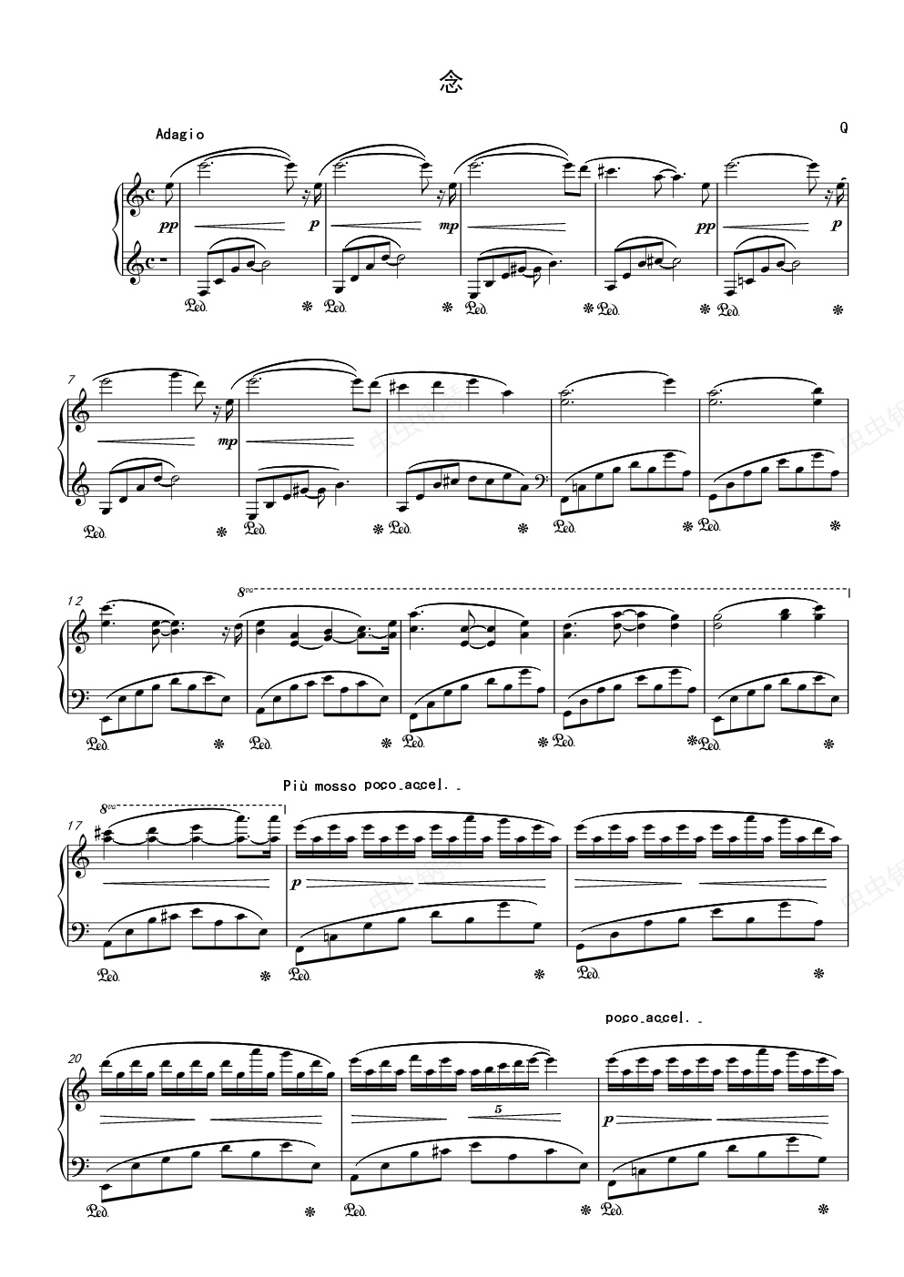 想了一下发现只有原来那一段的记忆是最清楚的,所有的情节和细节都还仿佛在昨天一样,但是对于之后的记忆就开始模糊,连上个月跟谁一起看了什么电影都完全没有印象。也许在感情最单一的日子里,记忆也才会越清晰,不断的重温,场景也就不断重现吧。 七月份无聊写了个开头然后一个多月没动八月一个晚上写完了,那个下面的踏板自己随意踩吧,我是为了音频里面有延音的效果所以打谱子导音频时用的,懒得删掉了好麻烦啊。这个曲子主要是想的原来的一些事情吧。上大学之后也没怎么写过流行。所以写了一首,就当时 练一下笔吧。。