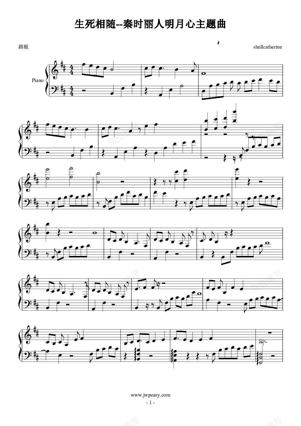 钢琴谱:生死相随-秦时丽人明月心主题曲
