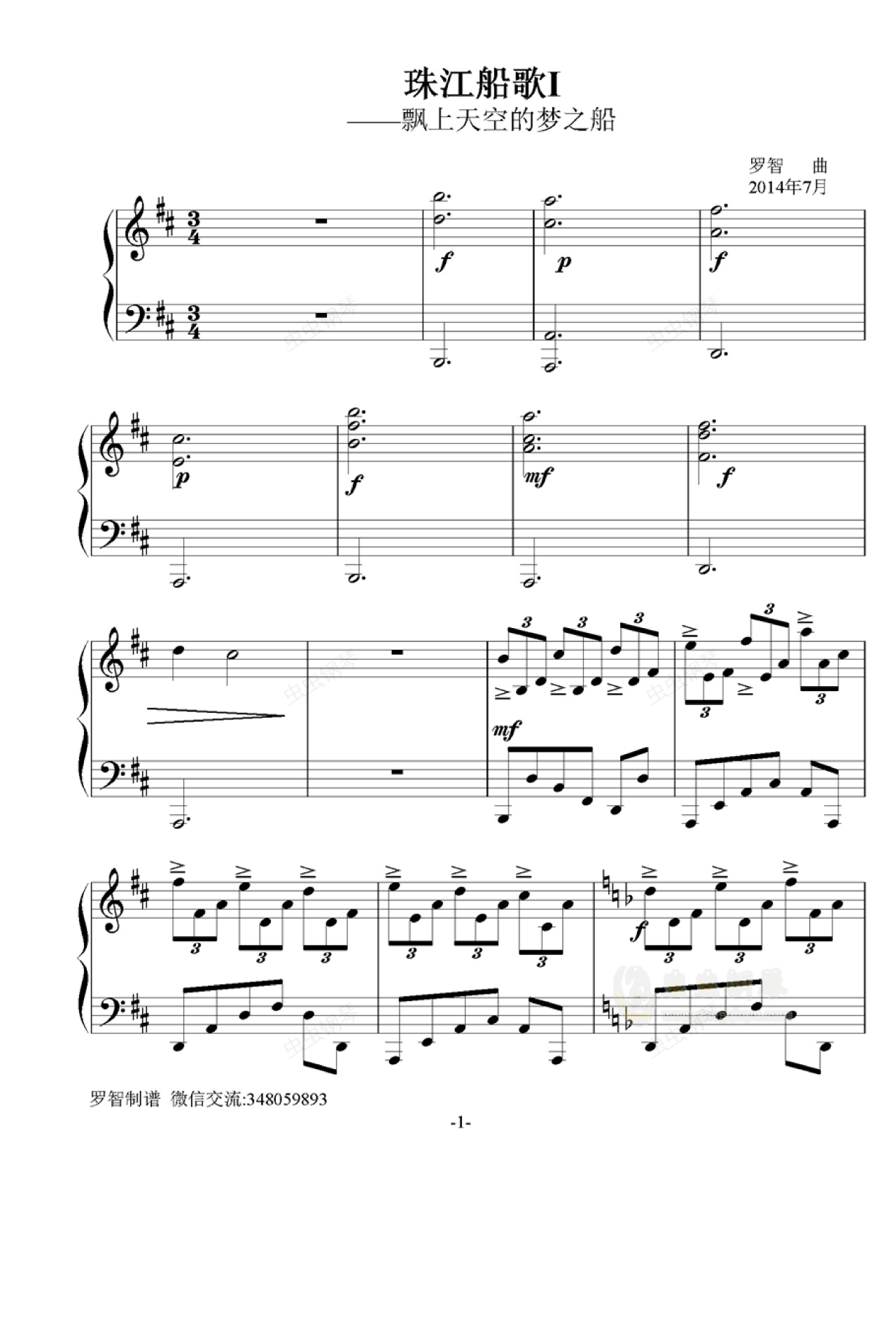 钢琴谱:珠江船歌Ⅰ——飘上天空的梦之船