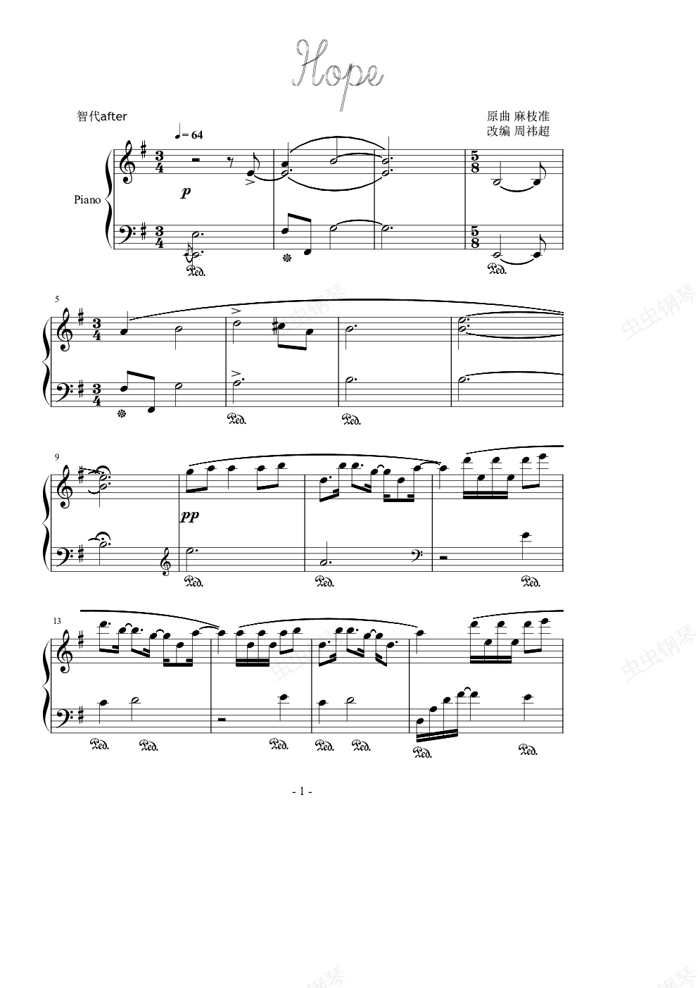 钢琴谱:Hope[智代afterー ~It’s a Wonderful Life~]