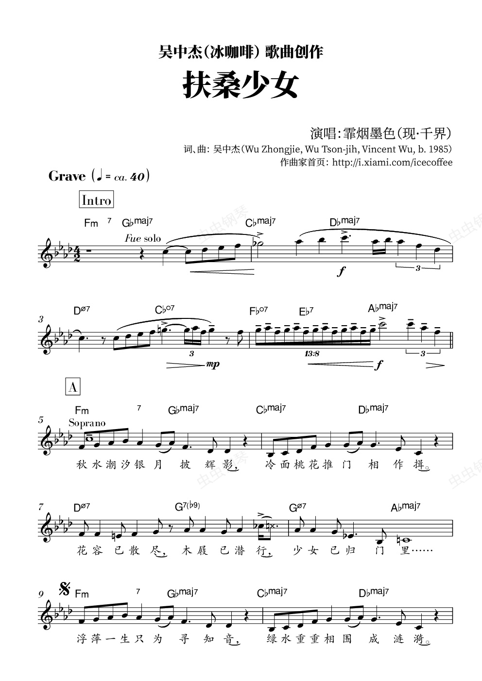 来者莫问我姓名;我只是一个传谱的。如果一定要我表个态,我就明确告诉你:“任何人都没有义务接受/喜欢任一特定艺术风格;同时,任何人都没有权利干涉他人对此特定风格的接受或喜爱。”,换句话说,你可以喜欢你的“乡村农金”,我可以喜欢我的“高雅古典”,各得其乐各取所需,本来没必要争吵的;在以往,可能由于意识形态管控的原因,加上人耳听觉规律,某些特定的艺术风格有更高的几率被推崇,与之在内容形式或含义上相反的艺术风格就有更高几率被贬低、压制。然而如今这个时代早就过去了。就酱。// 冰咖啡的汉族音乐和日本同人相关的作品,我感觉“乐而不淫,哀而不伤。”这必定是一种经典。不加以挽救将永久失去这宝贵遗产。支持我冰粉甲就是支持冰咖啡,贬低我就是继续沉默的螺旋。总之,取其精华,去其糟粕,不愿再多说。我只传谱,一切其它活动与我无关,到此一传,传完就走,保留遗产,传之后人。只要冰咖啡作品在虫钢上留着就行,赞还是批都与我无关,但我永不会忘记他的恩德。更多请不要打扰我了,我也很忙啊,谢谢体谅!