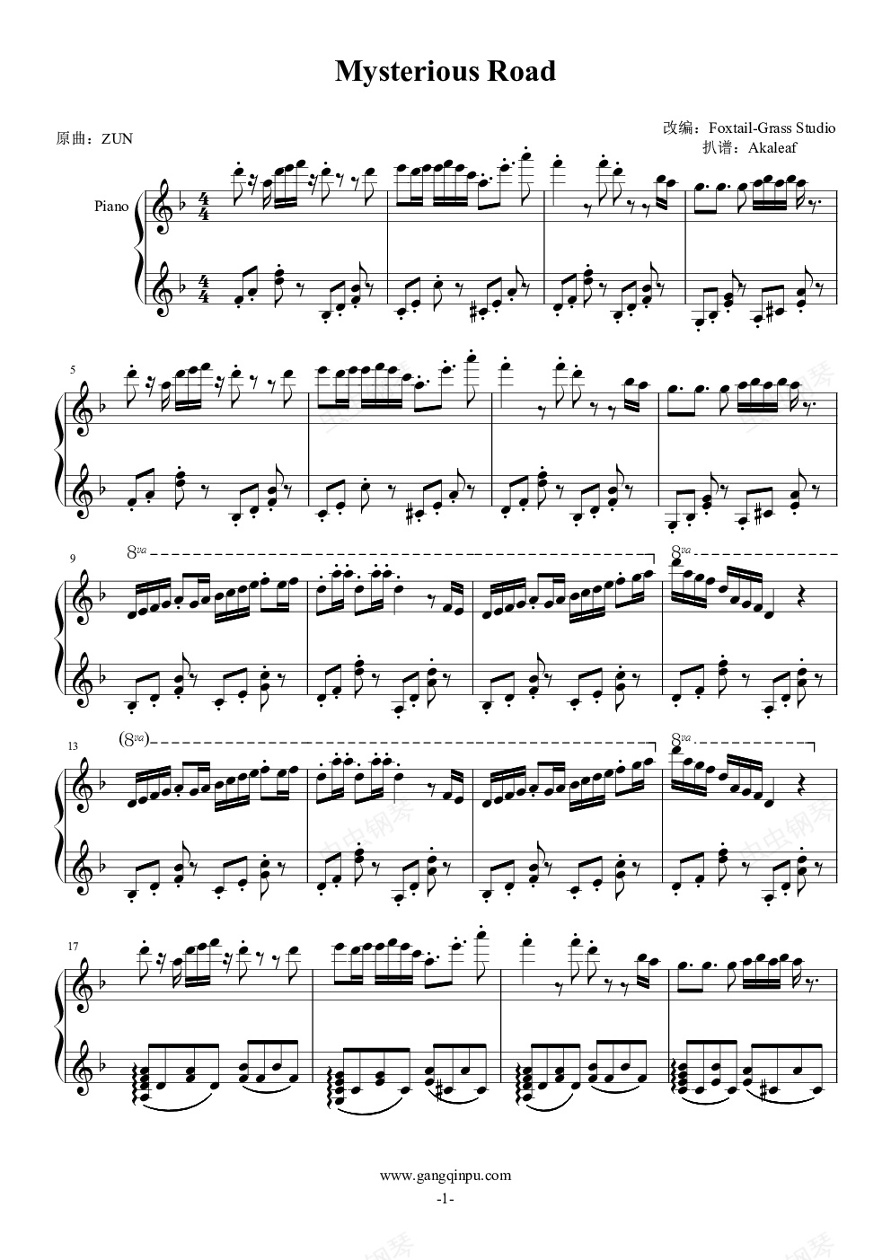 钢琴谱:【东方风神录】Myeterious road(原曲:運命のダークサイド)
