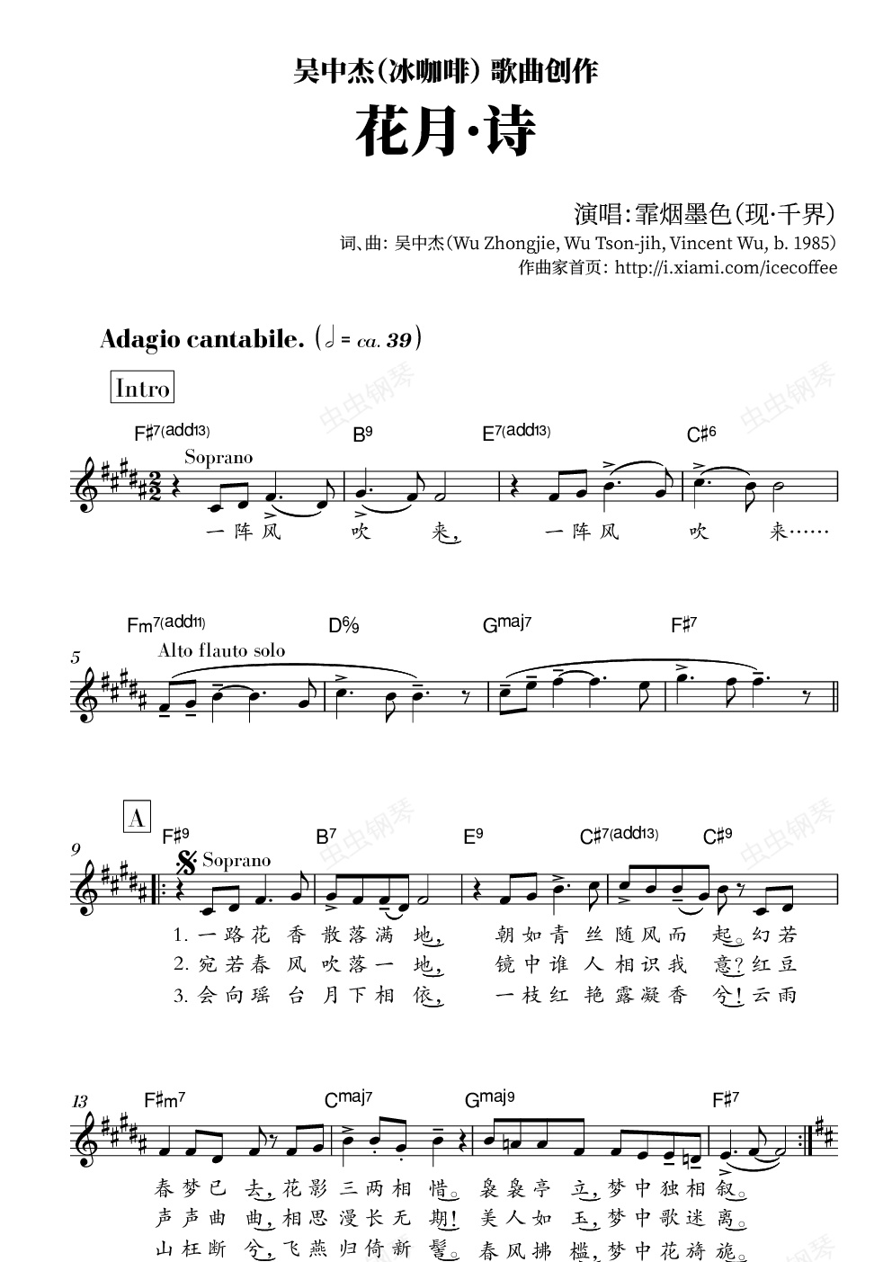 来者莫问我姓名;我只是一个传谱的。如果一定要我表个态,我就明确告诉你:“任何人都没有义务接受/喜欢任一特定艺术风格;同时,任何人都没有权利干涉他人对此特定风格的接受或喜爱。”,换句话说,你可以喜欢你的“乡村农金”,我可以喜欢我的“高雅古典”,各得其乐各取所需,本来没必要争吵的;在以往,可能由于意识形态管控的原因,加上人耳听觉规律,某些特定的艺术风格有更高的几率被推崇,与之在内容形式或含义上相反的艺术风格就有更高几率被贬低、压制。然而如今这个时代早就过去了。就酱。// 冰咖啡的汉族音乐和日本同人相关的作品,我感觉“乐而不淫,哀而不伤。”这必定是一种经典。不加以挽救将永久失去这宝贵遗产。支持我冰粉甲就是支持冰咖啡,贬低我就是继续沉默的螺旋。总之,取其精华,去其糟粕,不愿再多说。我只传谱,一切其它活动与我无关,到此一传,传完就走,保留遗产,传之后人。只要冰咖啡作品在虫钢上留着就行,赞还是批都与我无关,但我永不会忘记他的恩德。更多请不要打扰我了,我也很忙啊,谢谢体谅!