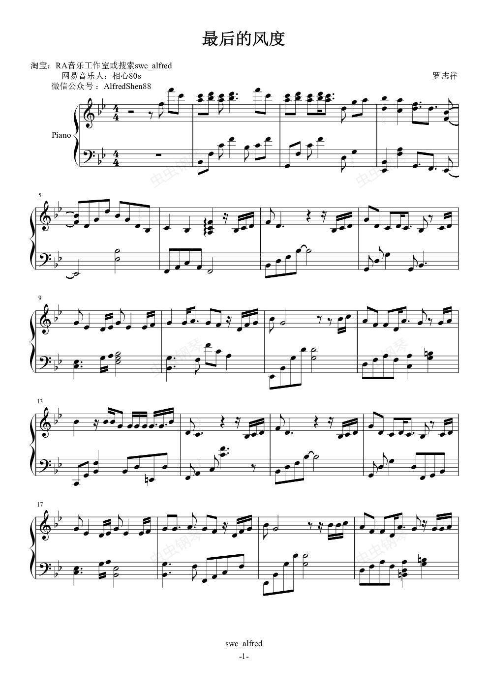 钢琴谱:最后的风度