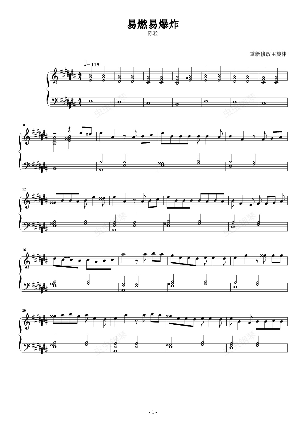 《易燃易爆炸》是一首由尚梦迪、骈然作词,由陈粒作曲并演唱的歌曲,该曲目收录在陈粒的首张个人专辑《如也》中。本曲谱说明,歌曲原调为升C大调