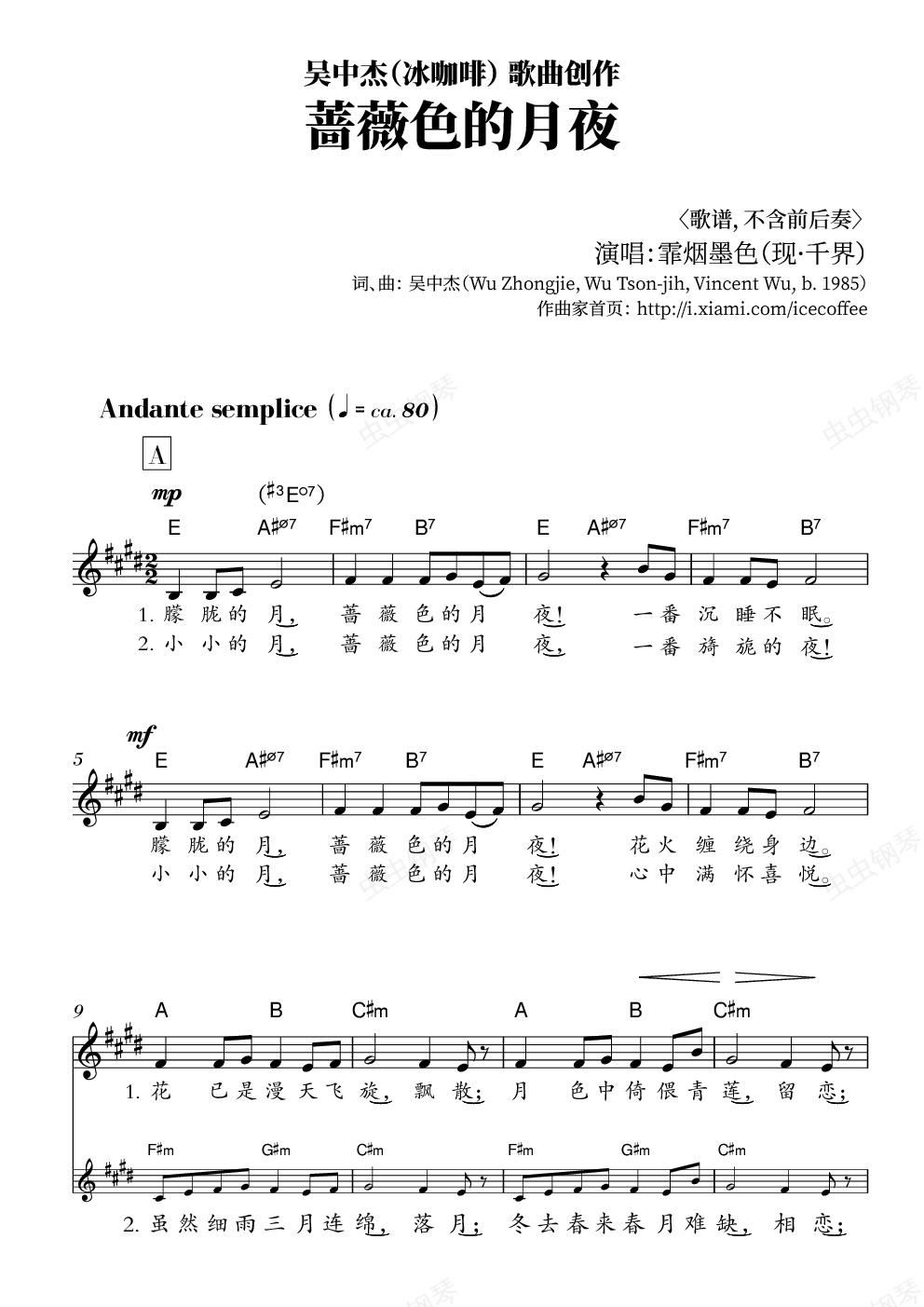 来者莫问我姓名;我只是一个传谱的。如果一定要我表个态,我就明确告诉你:“任何人都没有义务接受/喜欢任一特定艺术风格;同时,任何人都没有权利干涉他人对此特定风格的接受或喜爱。”,换句话说,你可以喜欢你的“乡村农金”,我可以喜欢我的“高雅古典”,各得其乐各取所需,本来没必要争吵的;在以往,可能由于意识形态管控的原因,加上人耳听觉规律,某些特定的艺术风格有更高的几率被推崇,与之在内容形式或含义上相反的艺术风格就有更高几率被贬低、压制。然而如今这个时代早就过去了。就酱。// 冰咖啡的汉族音乐和日本同人相关的作品,我感觉“乐而不淫,哀而不伤。”这必定是一种经典。不加以挽救将永久失去这宝贵遗产。支持我冰粉甲就是支持冰咖啡,贬低我就是继续沉默的螺旋。总之,取其精华,去其糟粕,不愿再多说。我只传谱,一切其它活动与我无关,到此一传,传完就走,保留遗产,传之后人。只要冰咖啡作品在虫钢上留着就行,赞还是批都与我无关,但我永不会忘记他的恩德。更多请不要打扰我了,我也很忙啊,谢谢体谅!