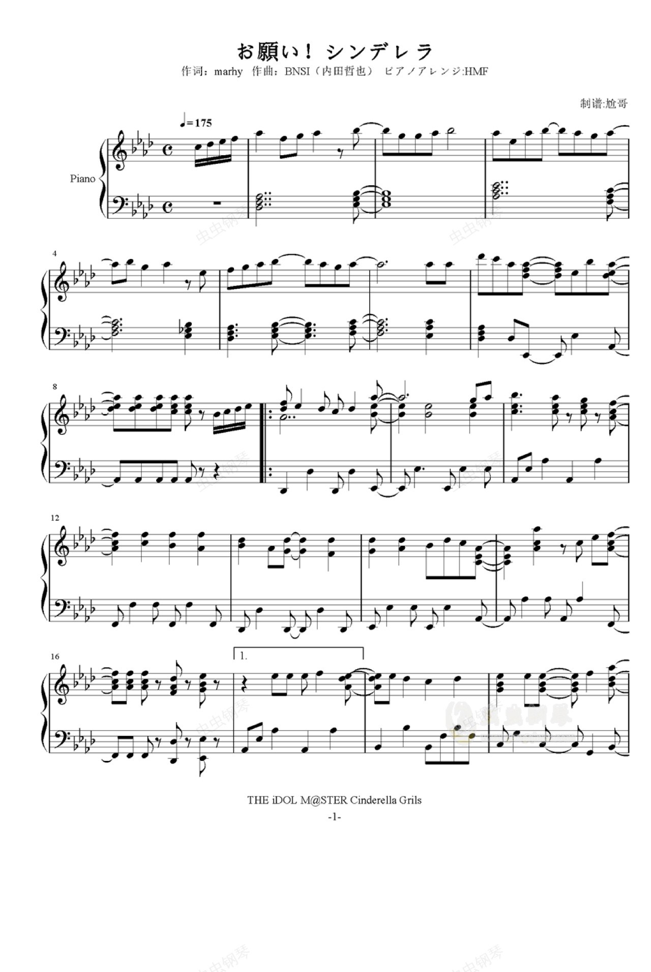 钢琴谱:【偶像大师】お願い!シンデレラ