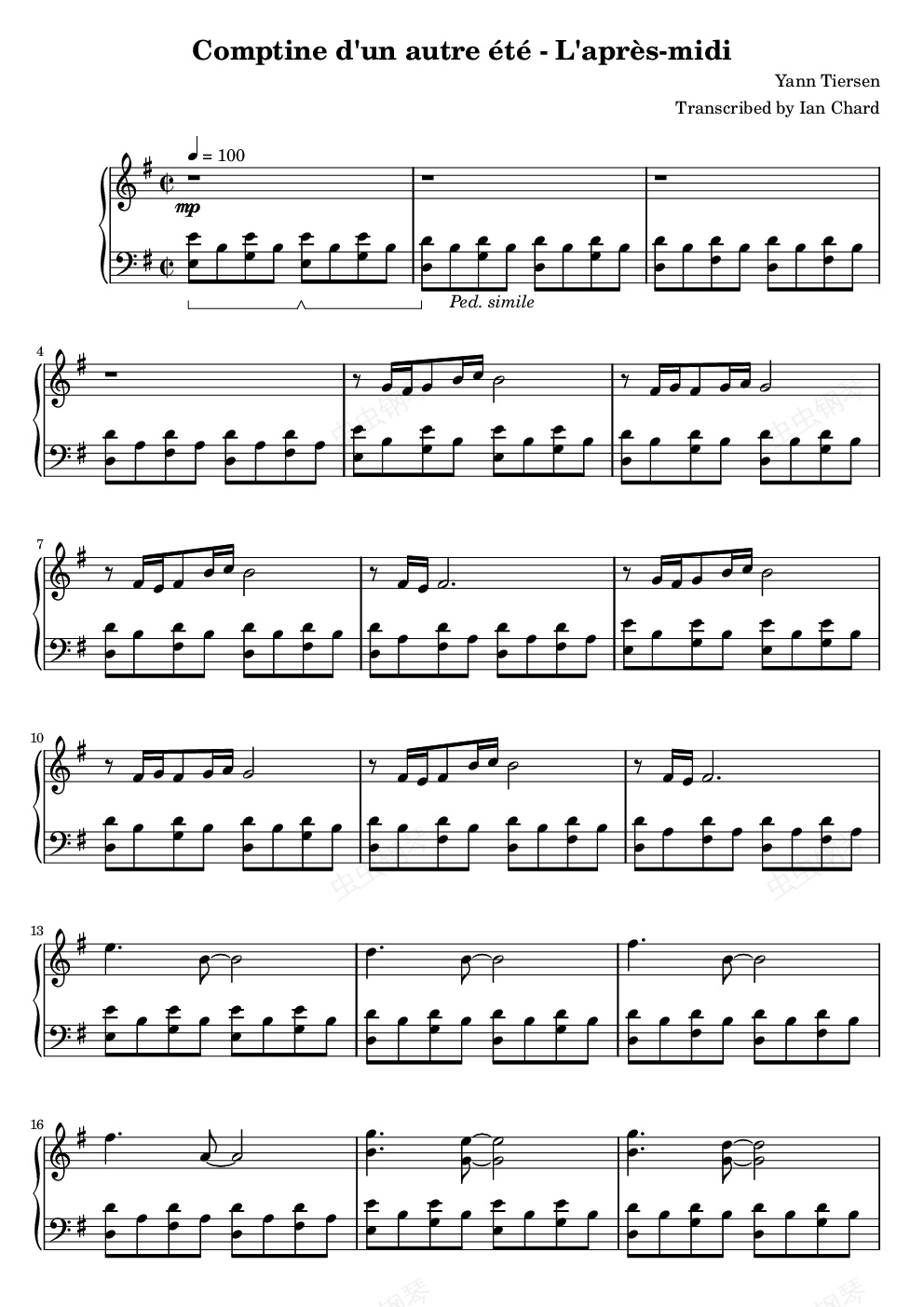 钢琴谱:Comptine d'un autre été : L'Après midi