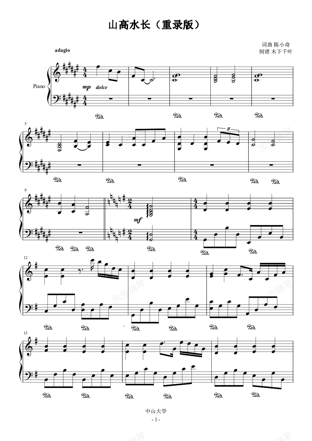 中山大学第二校歌。 本来都有6年没碰了,结果这次迎新晚会被老师逼着搞的,所以心情很不好。 但是希望能帮到大家——如果有需要的话。 如果需要合唱简谱可联系我,不过也是自扒+手写版,不一定全对。 我是听着重录版的《山高水长》扒的谱,很可能不完全正确,因为真的是听了六七个小时一个一个音打出来的,所以希望尊重我的劳动成果,即使有错误的地方请免责,毕竟我不是音乐专业出身——虽然这么说似乎很不负责任。 能耐心看到这里的谢谢大家。