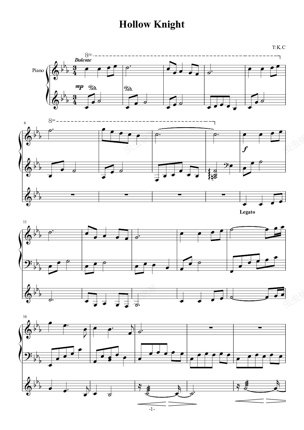 钢琴谱:Hollow Knight(Title)