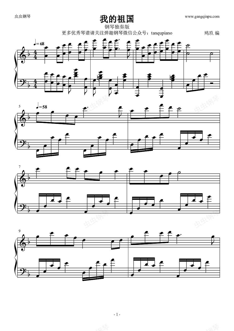 钢琴谱:我的祖国(实用好听版,鸠玖版)