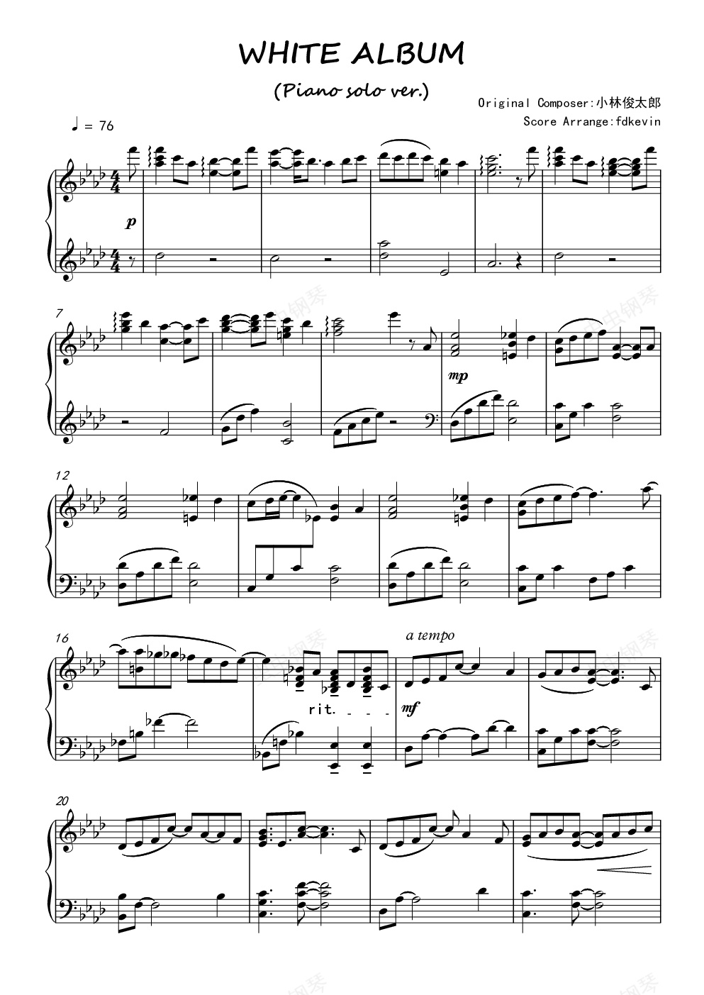 钢琴谱:WHITE ALBUM (Piano solo ver.)